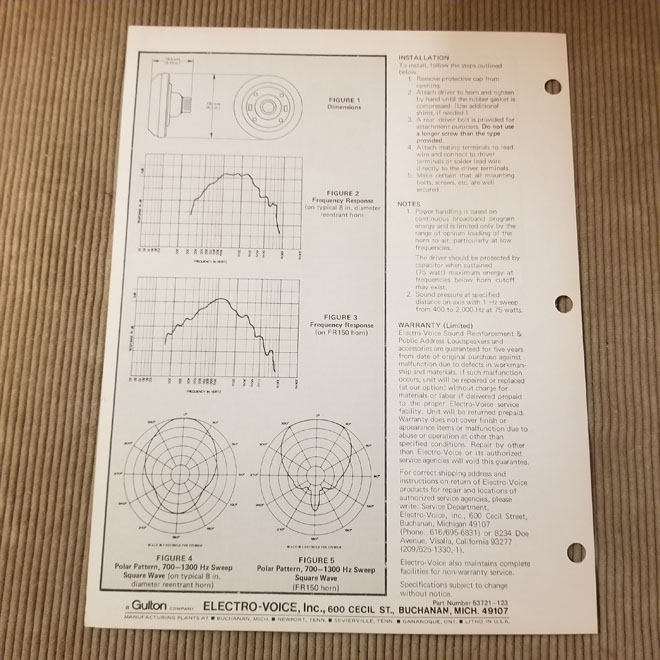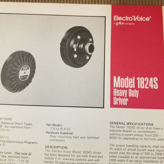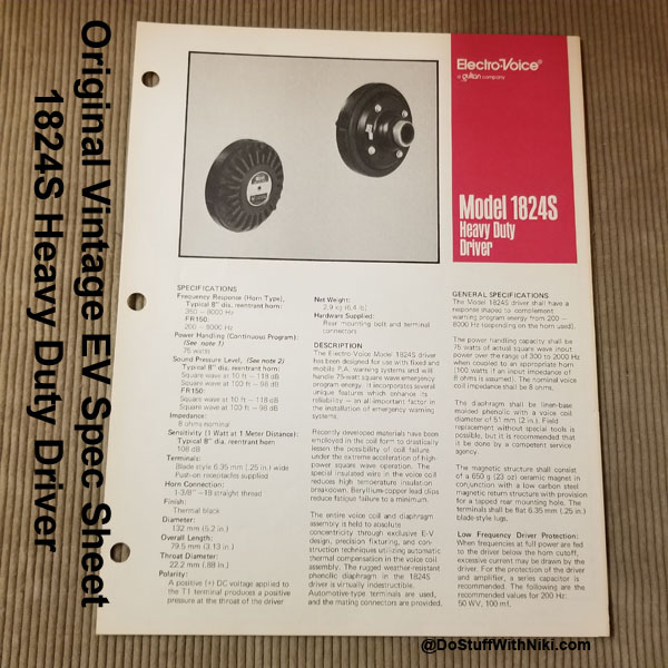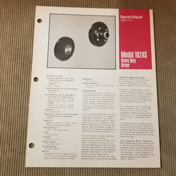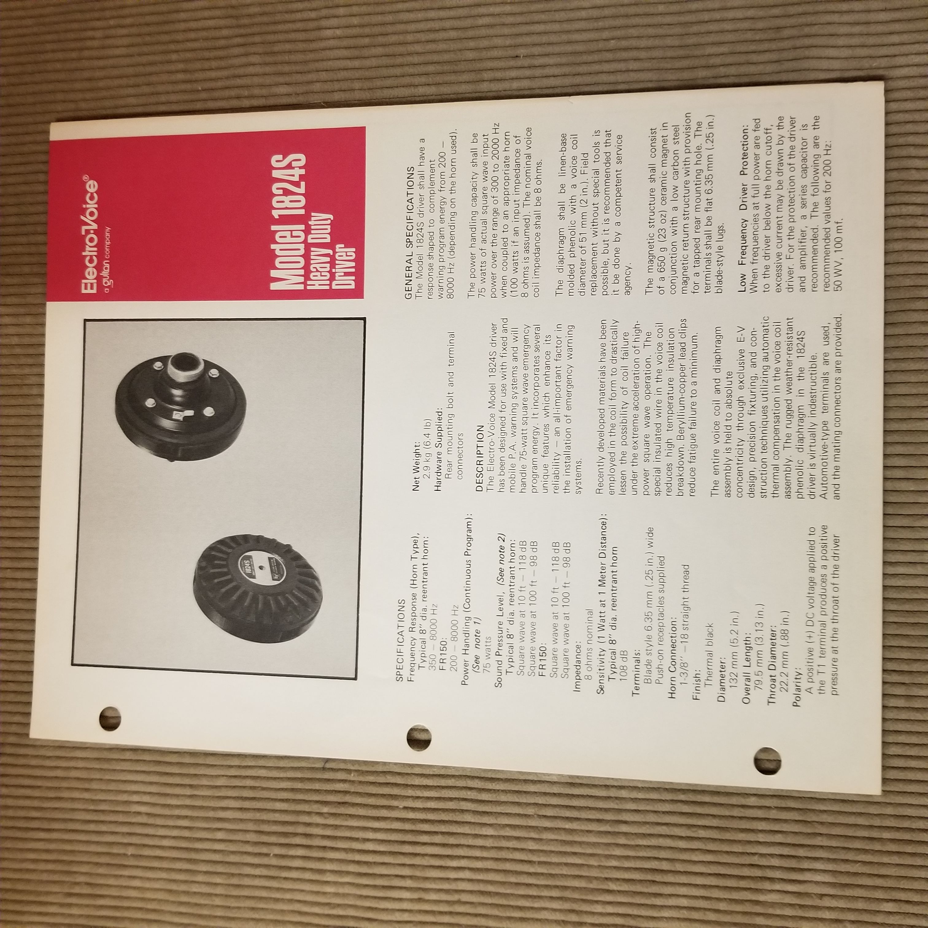 Original Vintage EV Spec Sheet 1824S Heavy Duty Driver