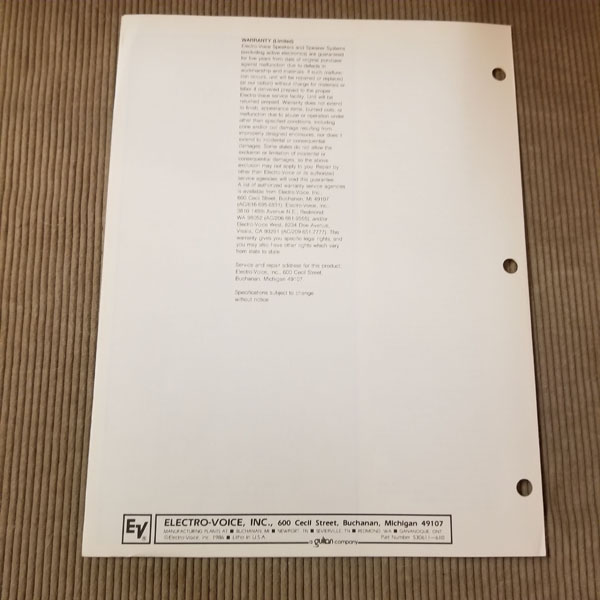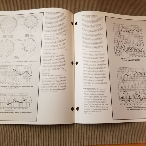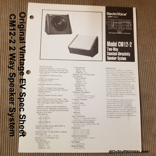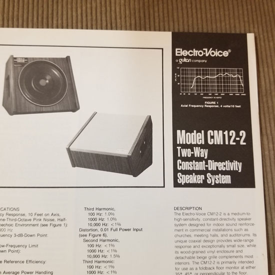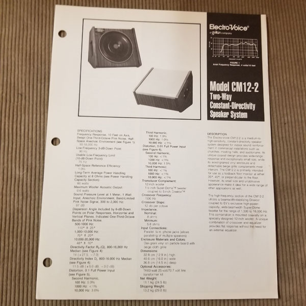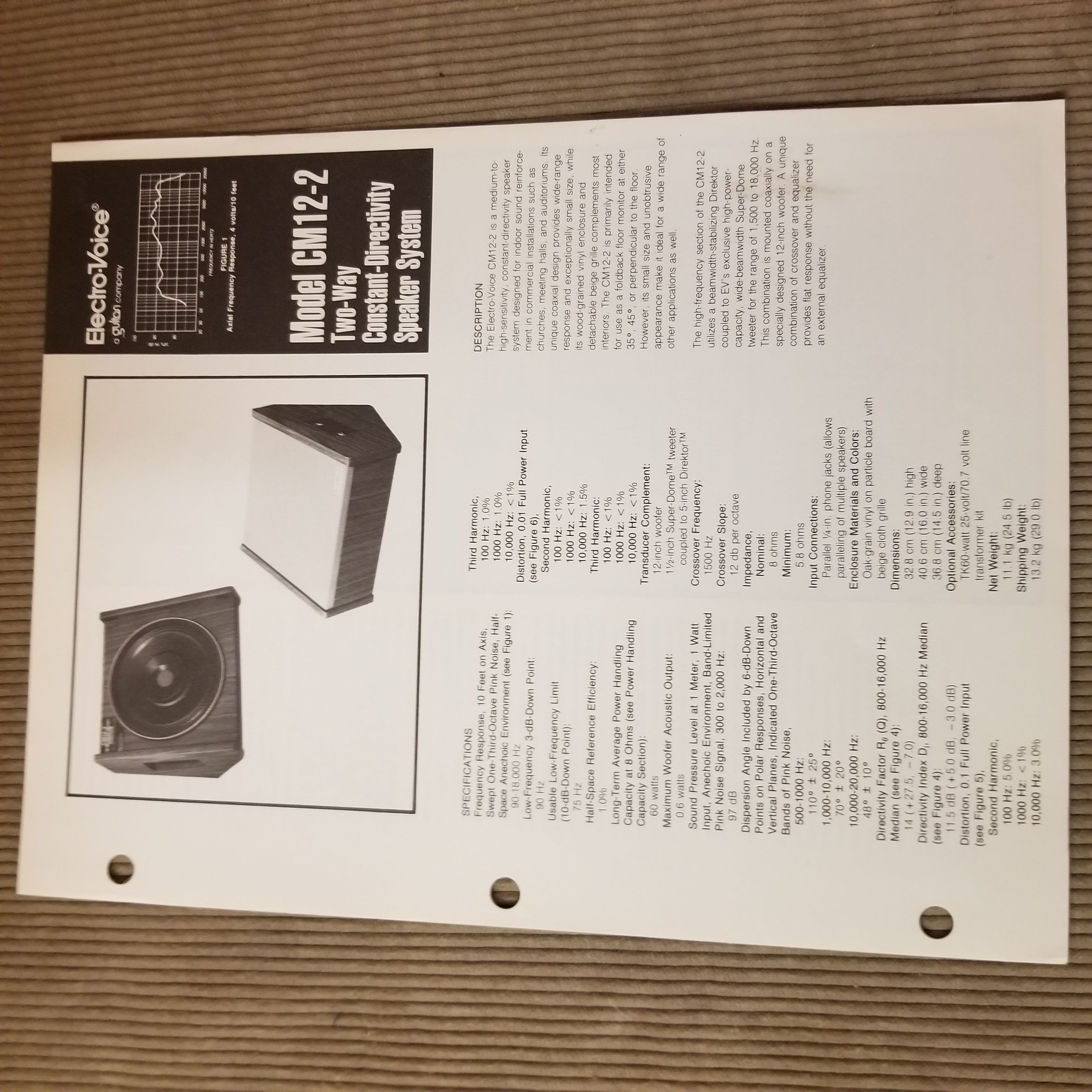 Original Vintage EV Spec Sheet CM12-2 Two Way Constant Directivity Speaker System, Part# 530611-610, 2 pages. Good condition.