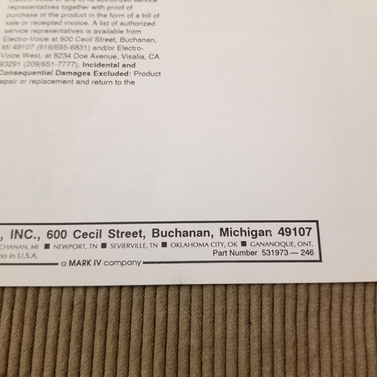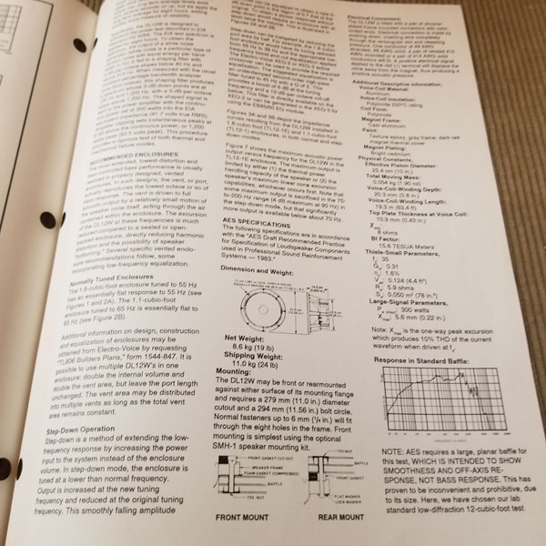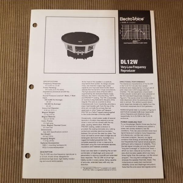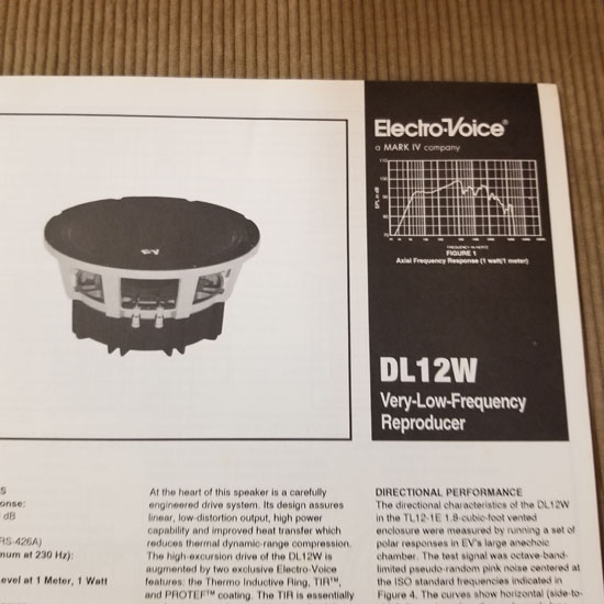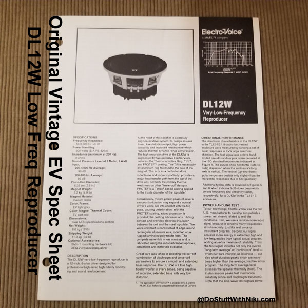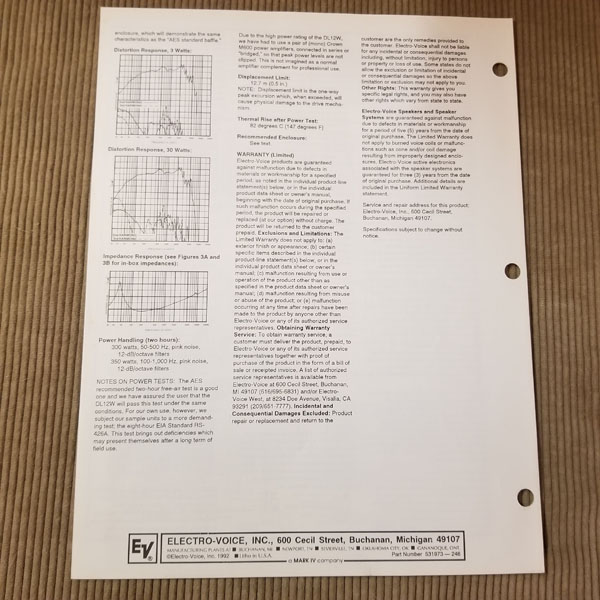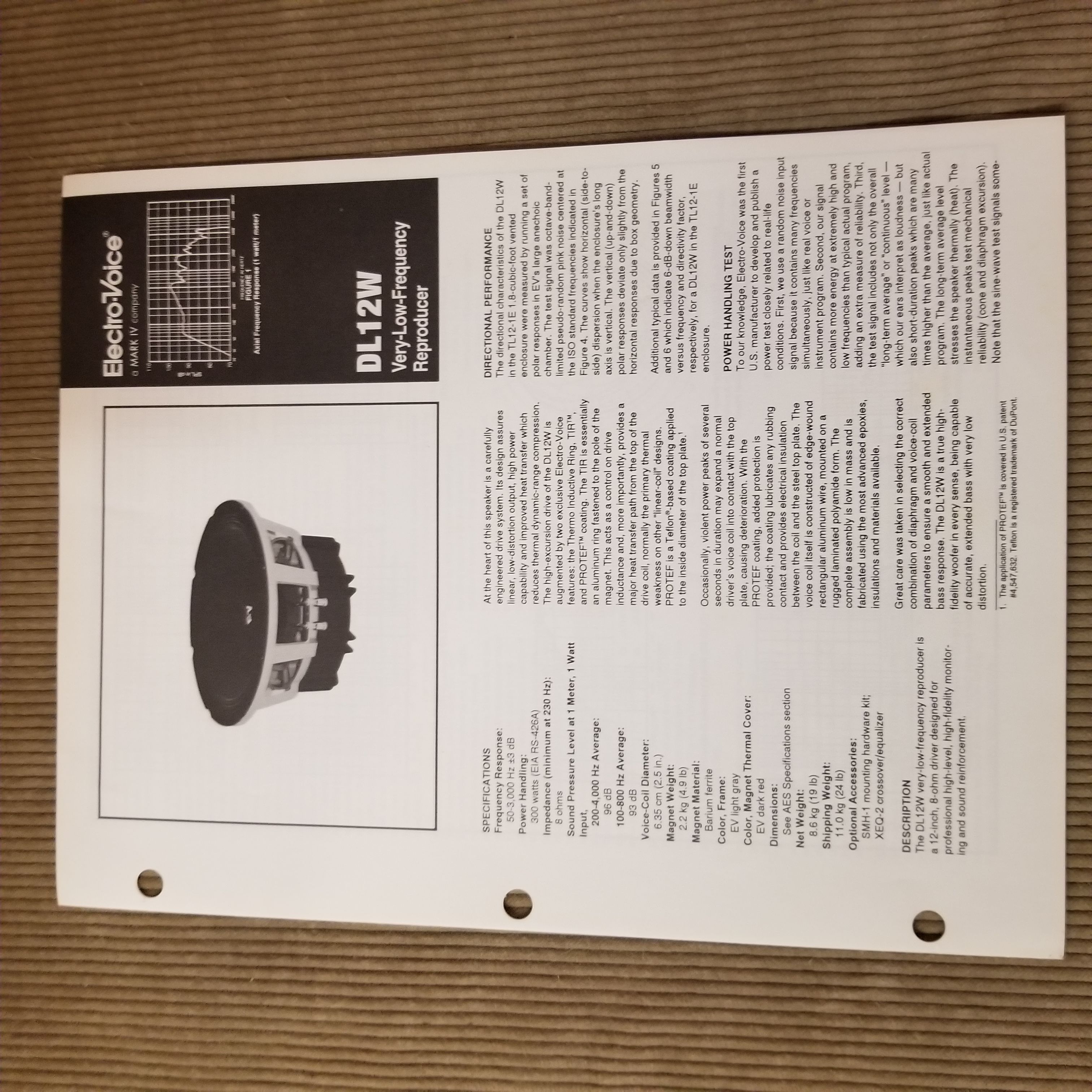 Original Vintage EV Spec Sheet DL12W Low Freq Reproducer