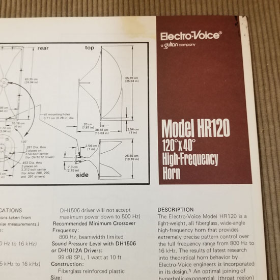 Original Vintage EV Spec Sheet HR120 High Freq Horn