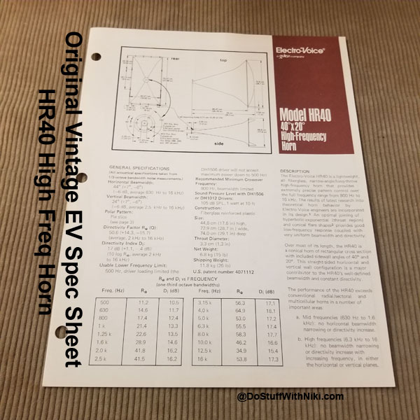 Original Vintage EV Spec Sheet HR40 High Freq Horn