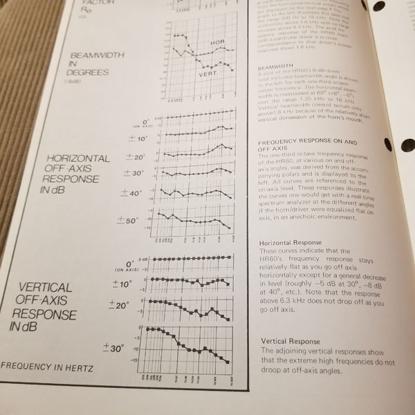 Original Vintage EV Spec Sheet HR60 High Freq Horn