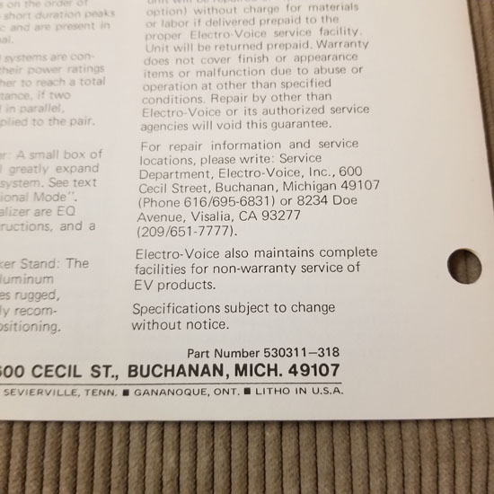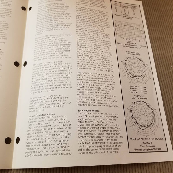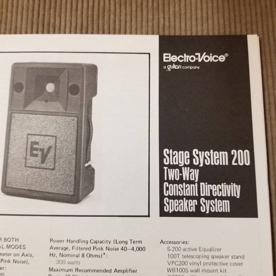 Original Vintage EV Spec Sheet Stage System 200Speaker system