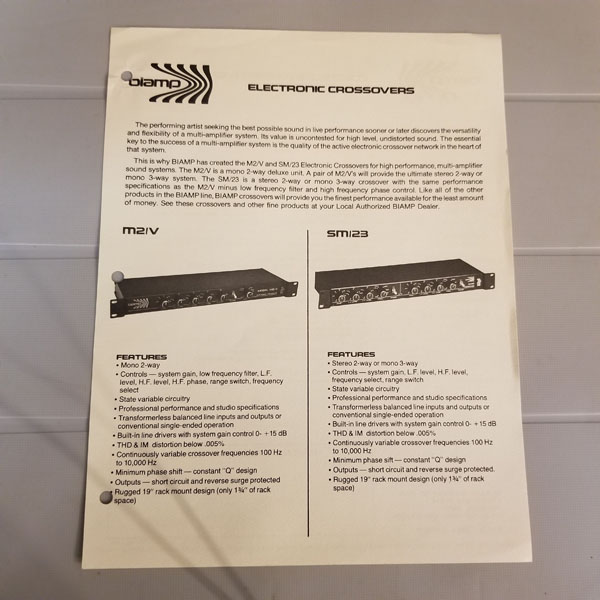 Original vintage BiAMP Electronic Crossovers dealers Brochure/sheet. VG Condition.