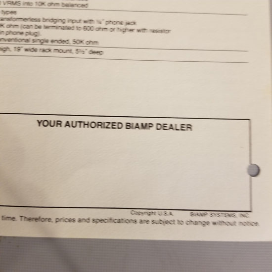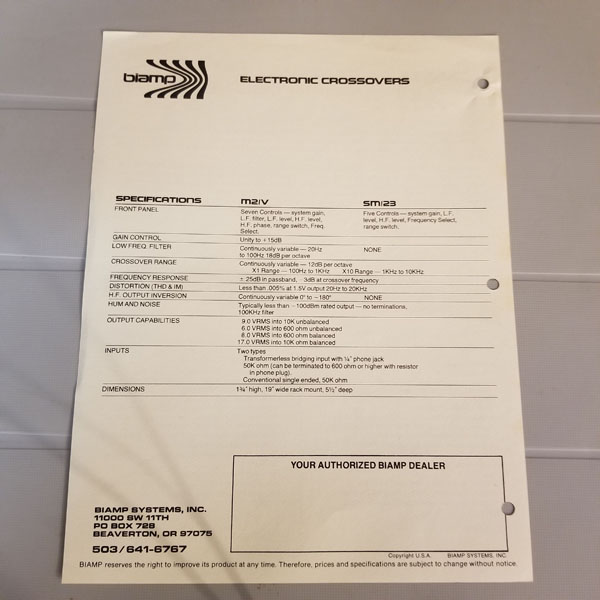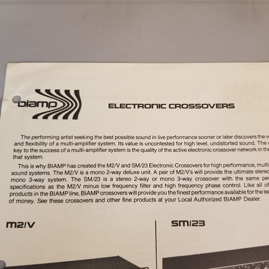 Original vintage BiAMP Electronic Crossovers dealers Brochure