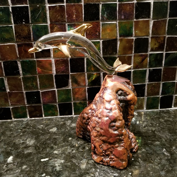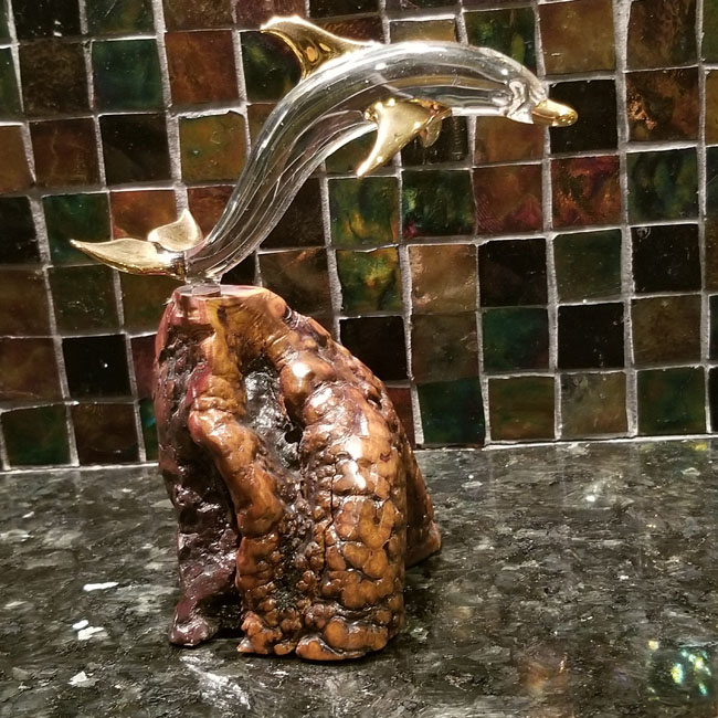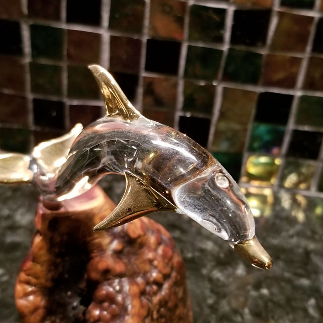 Vintage Glass Baron Dolphin on Manzanita. 22k accents