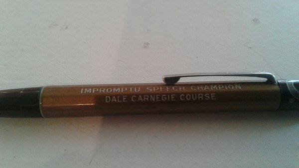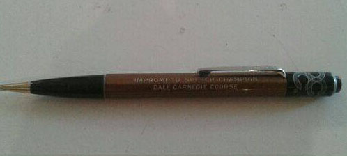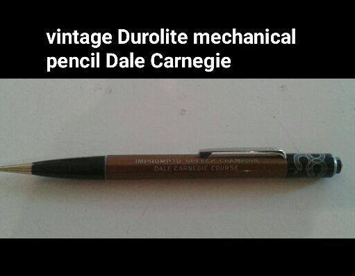 Vintage metallic color Durolite mechanical pencil in working good condition. Has imprint "Impromptu Speech Champion Dale Carnegie Course". Nice piece.
