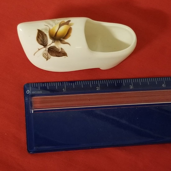 Sandford bone china, made in England miniature clog in nice condition. Floral pattern in front. 3 3/8" long.