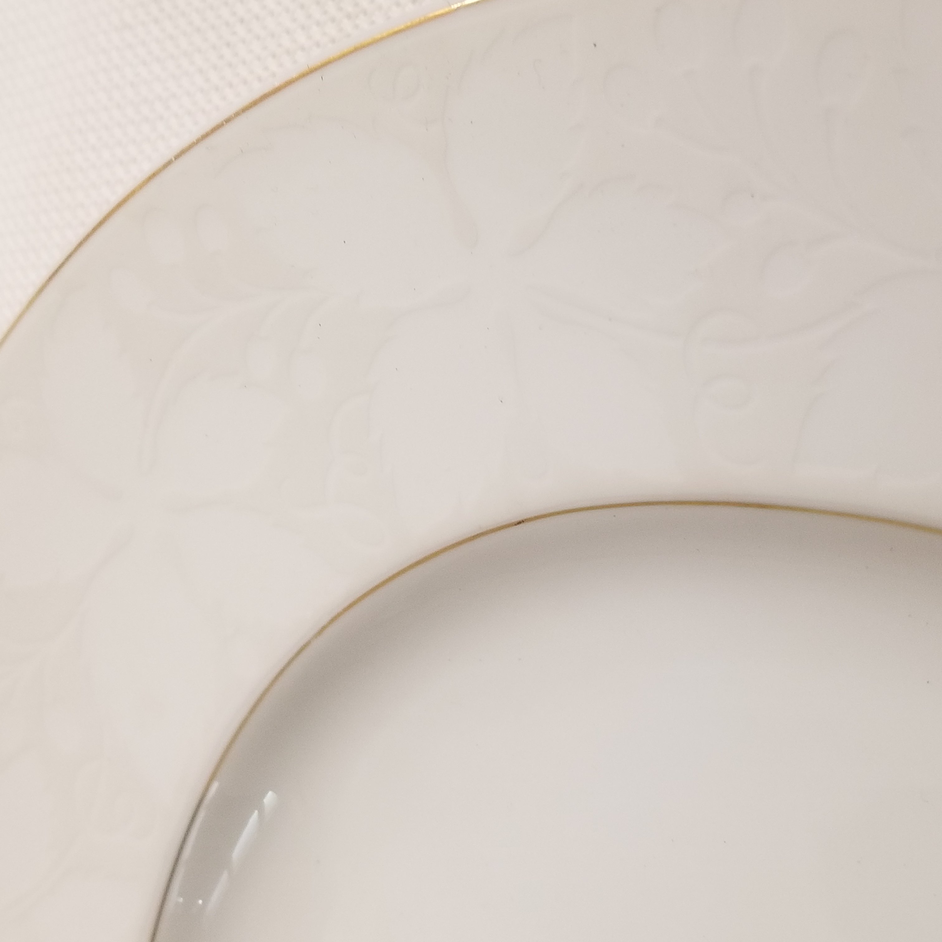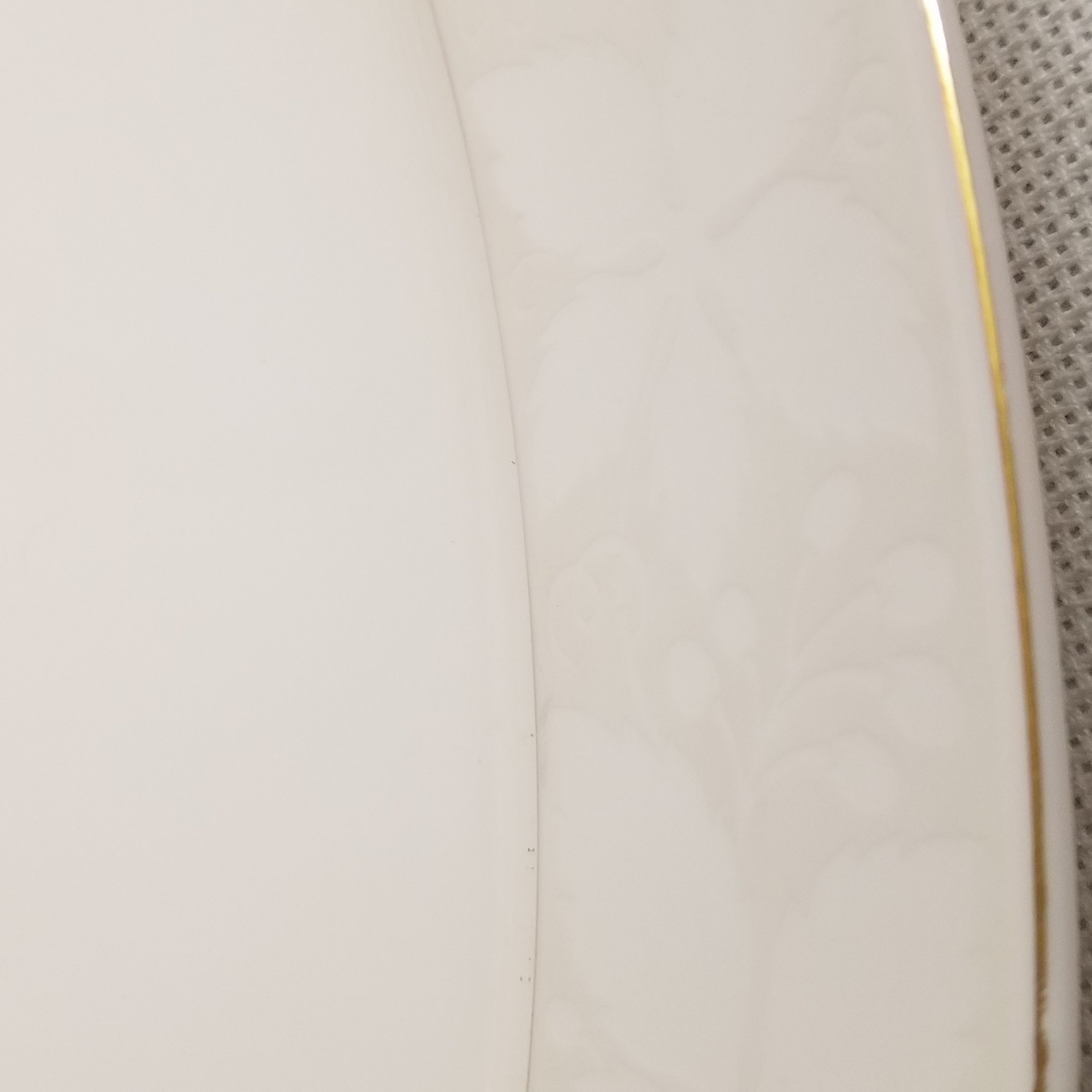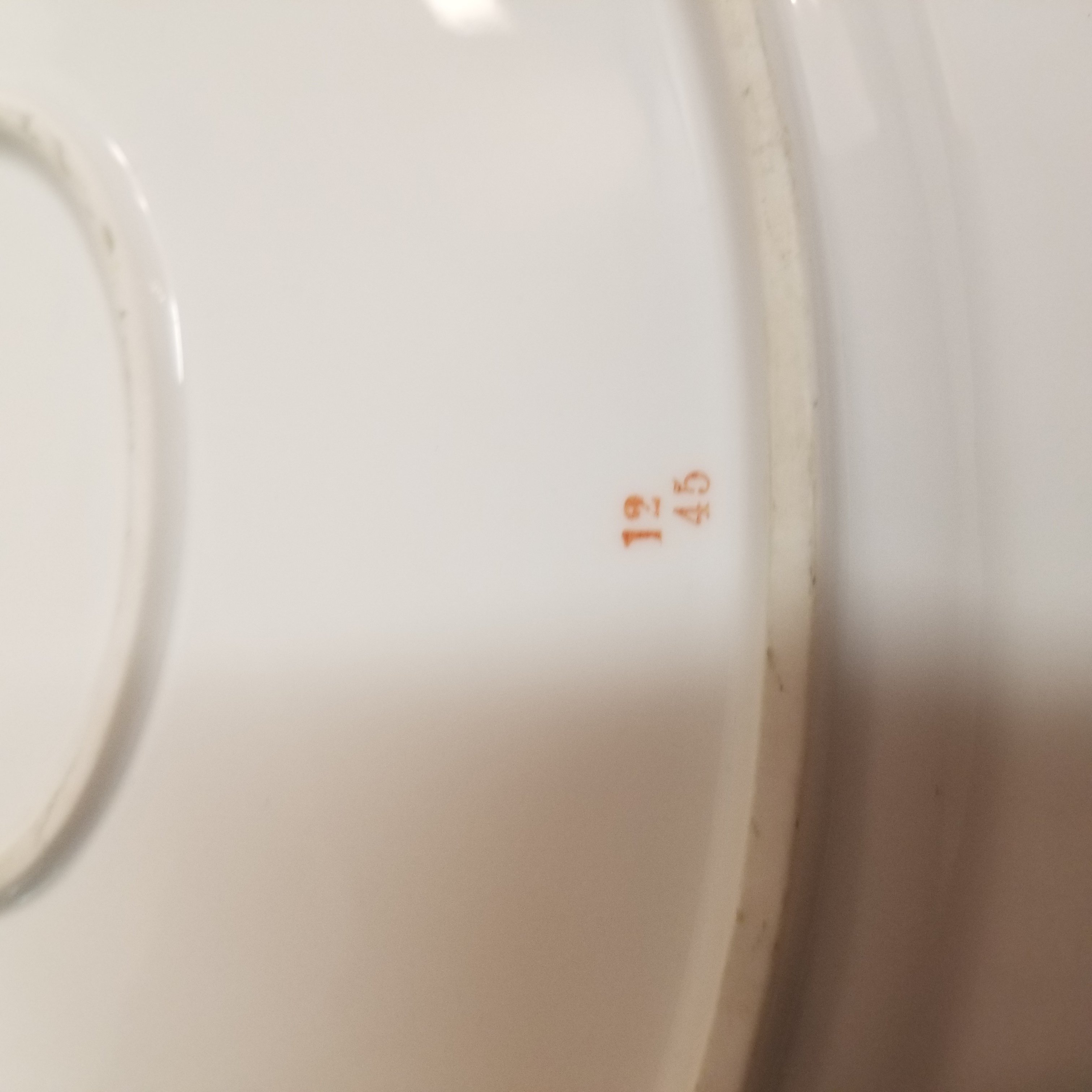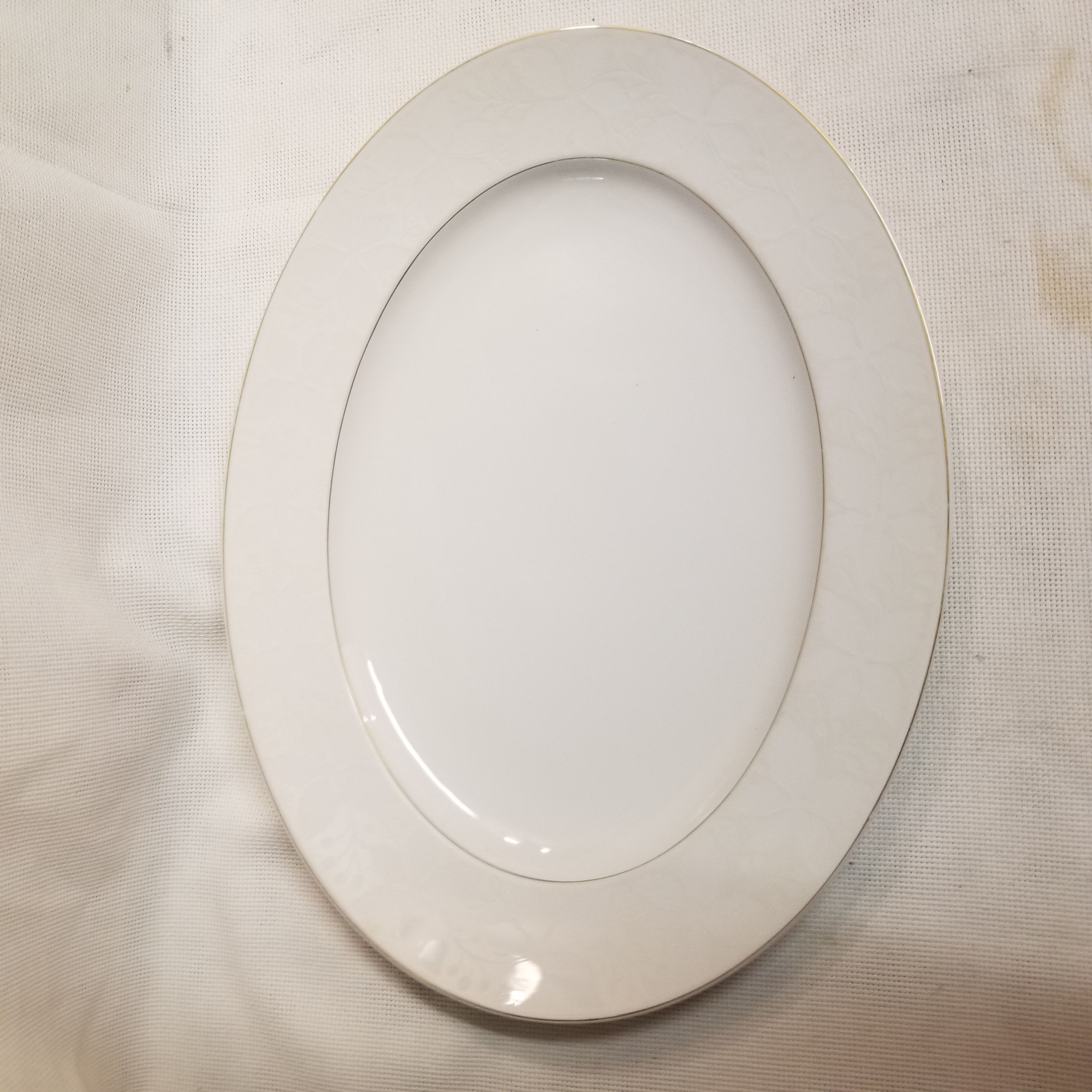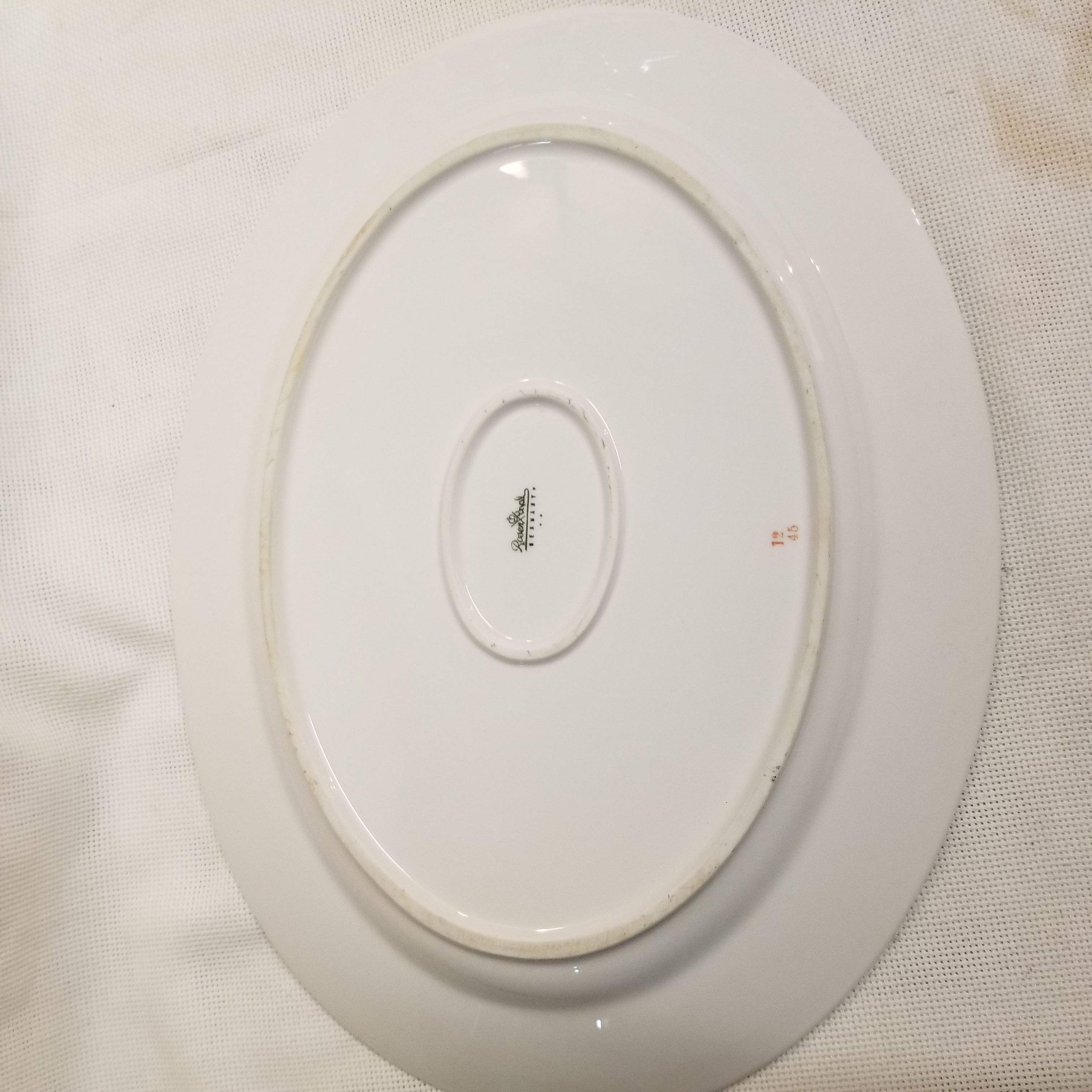 Rosenthal White Velvet with the Gold trim pattern, lg oval serving plate or platter. 12 5/8" x 9 1/2". It is my family's set that my mother was already collecting before I was born in 69. This set maybe only came out twice a year for special occasions, and was kept in their teak cabinet all other times. The plate is in near new condition. Rosenthal Germany and the numbers 12 45 are on the back. It is very difficult for me to part with this set but I really cant use a set this big, which is why I finally decided to start selling the pieces off. A gorgeous piece from the original owner!